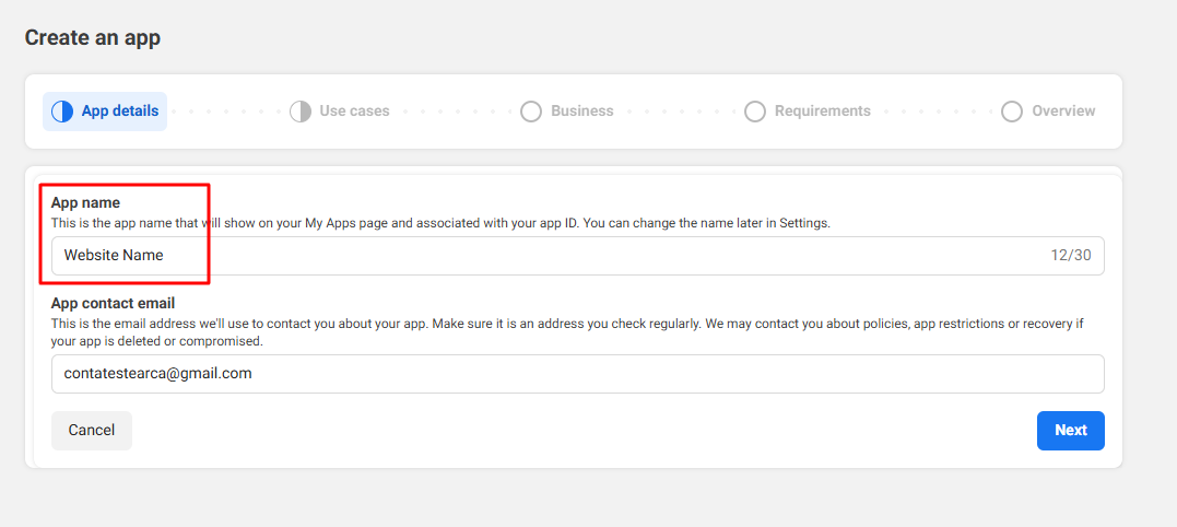 - Add the website's name under 'App Name'.