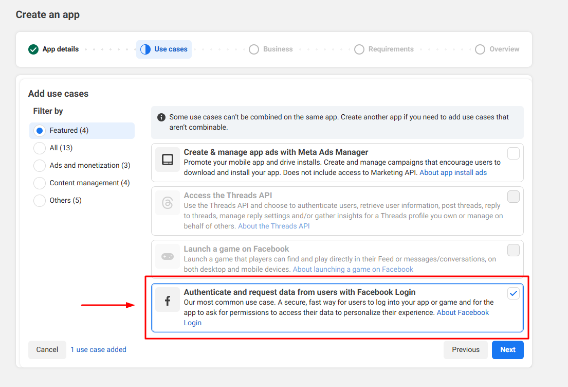 - Go back to your Facebook Developers Dashboard.