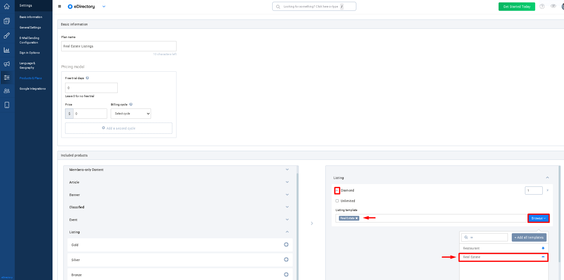 Now that your Real Estate feature is set up, you’ll need to create a plan that allows users to submit real estate listings.