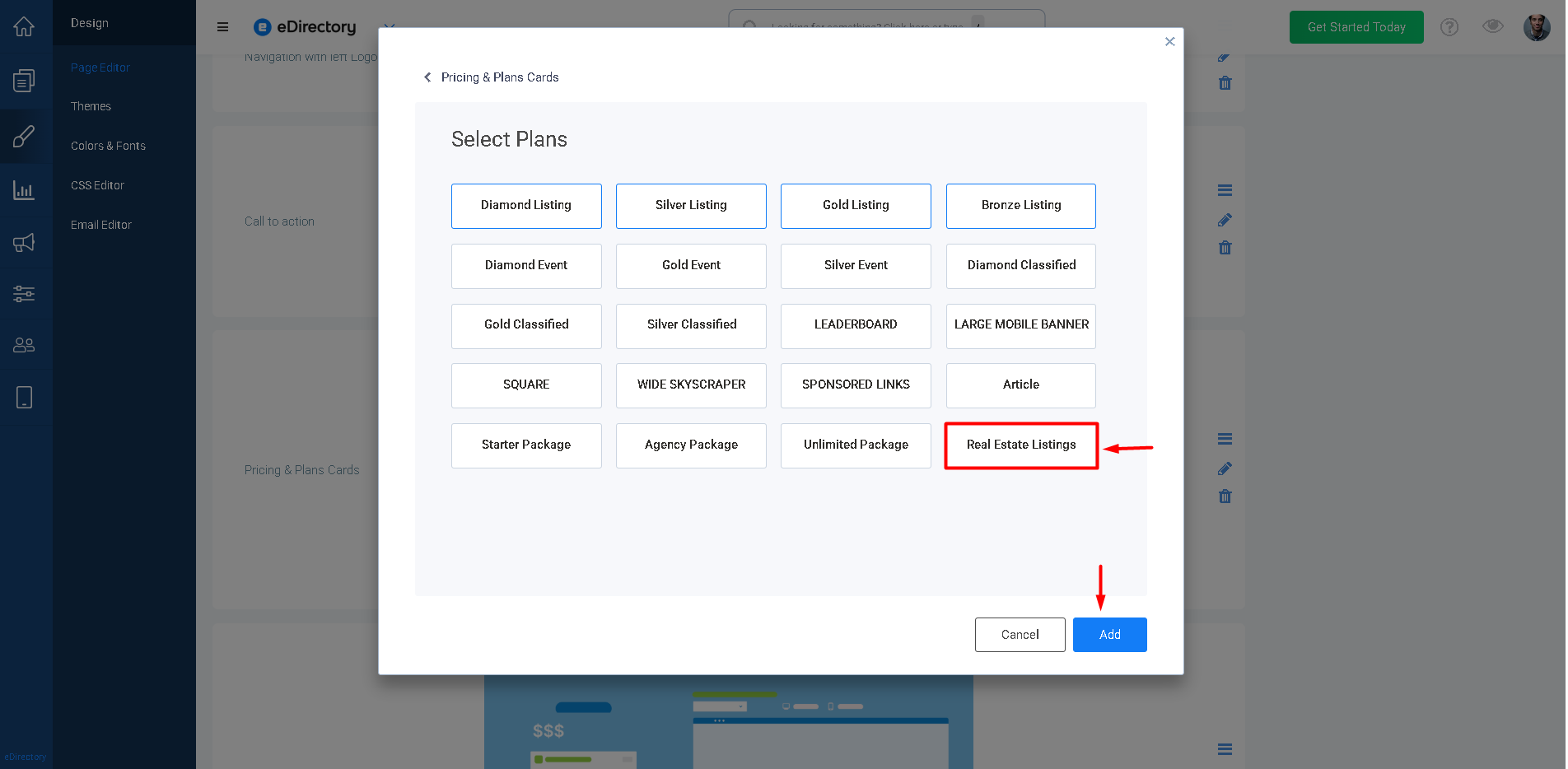 - Select your Real Estate plan and click Add.
