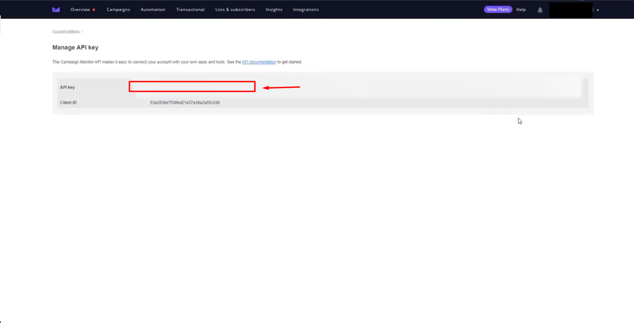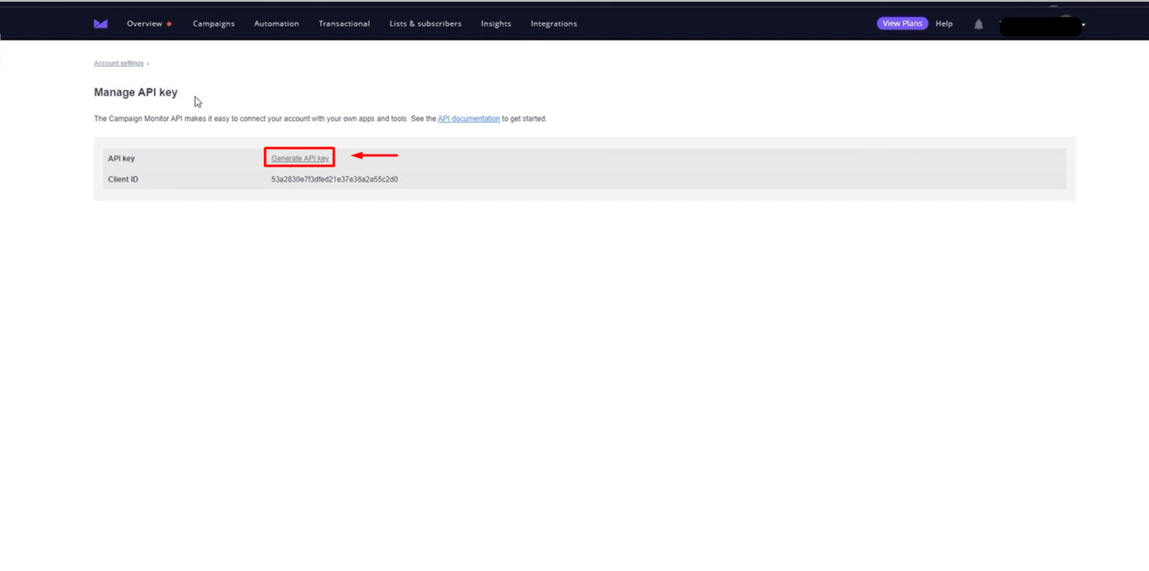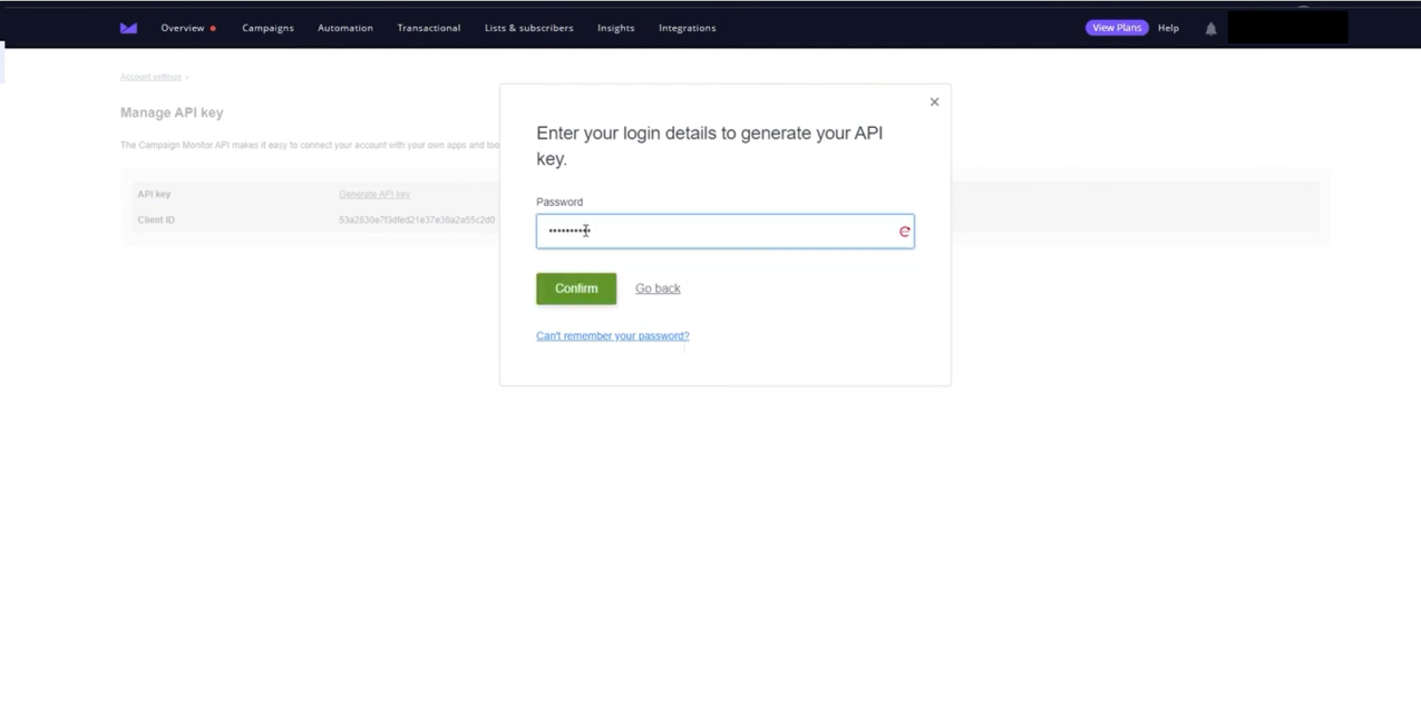 - Click Generate API Key. Campaign Monitor will ask you to enter your password to generate the API key.