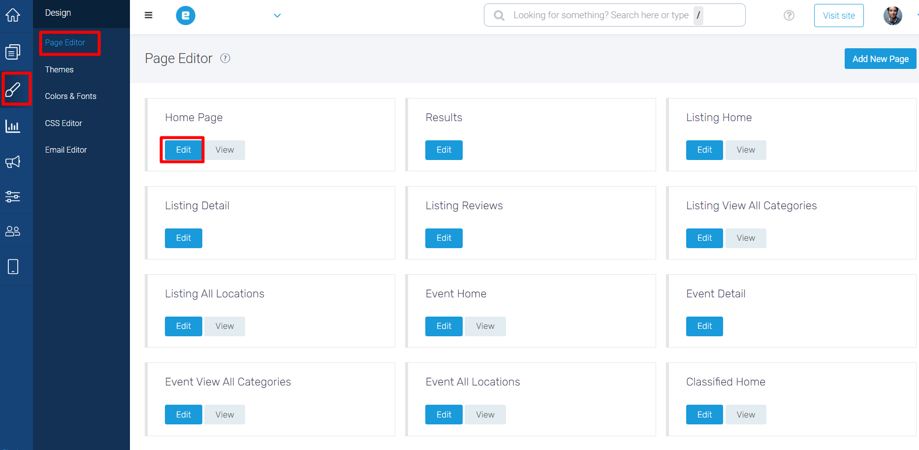 - Go to Design > Page Editor in the Site Manager.