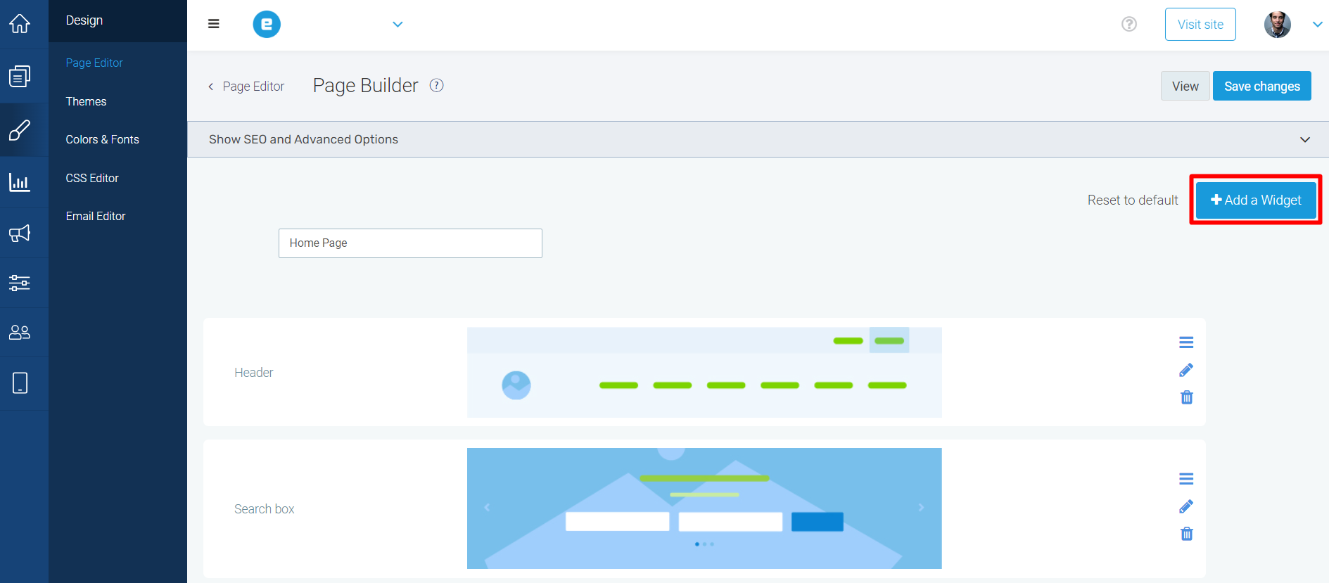 - Click Add a Widget.