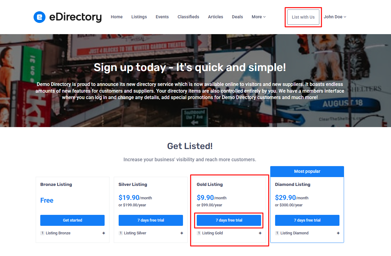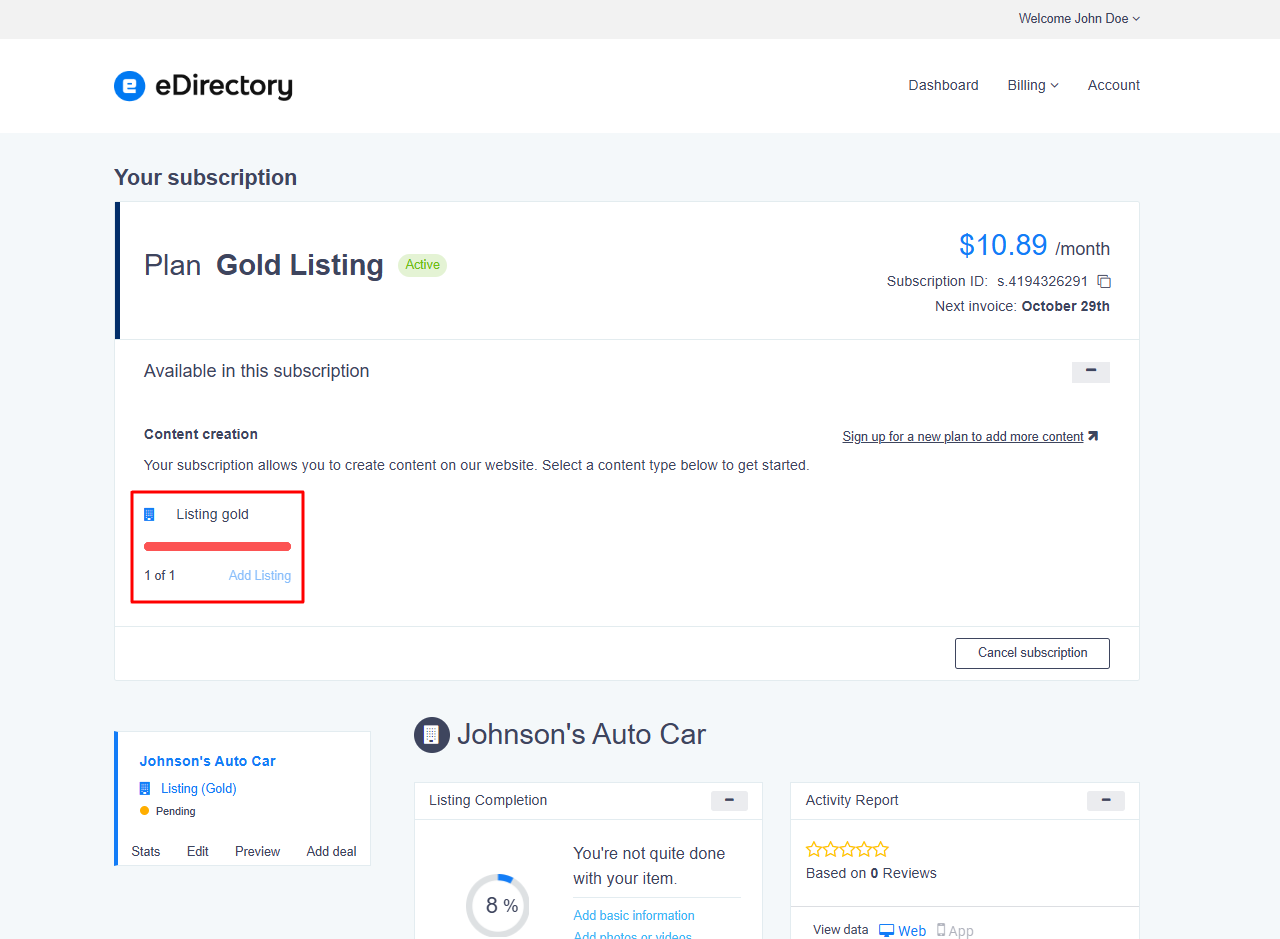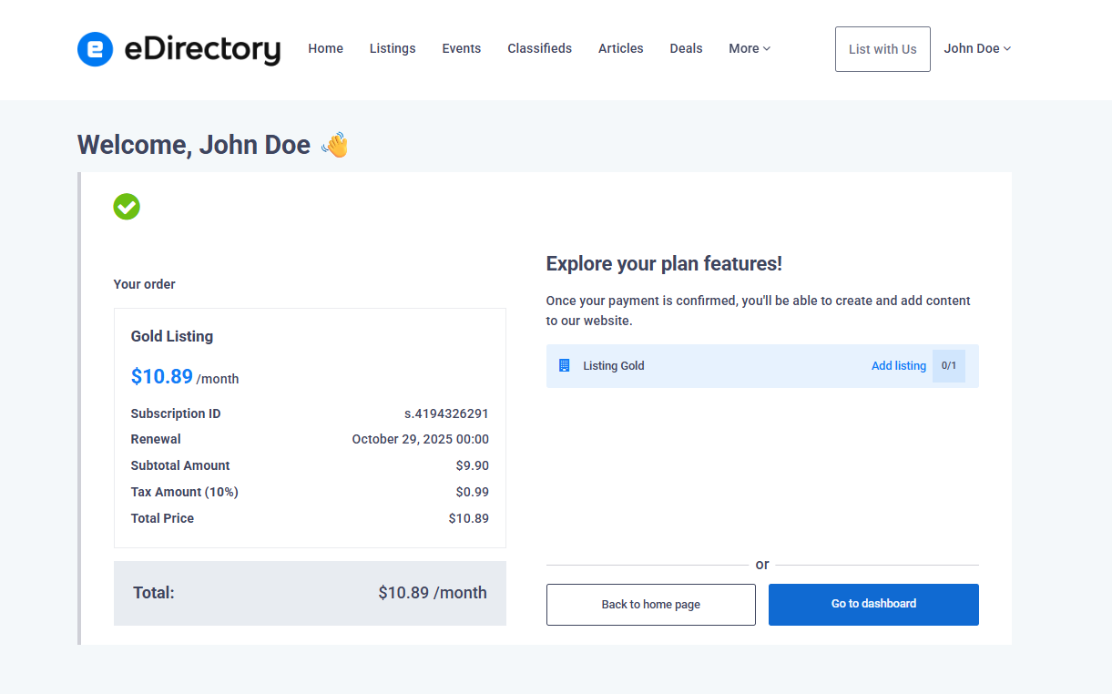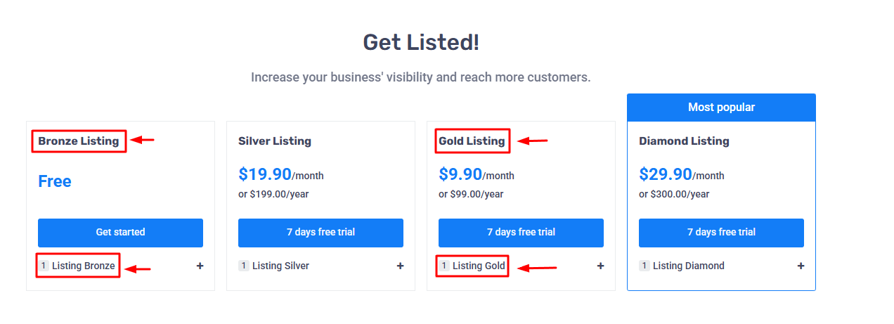 Many customers may start using a free plan on your eDirectory site, but at some point, they might want to upgrade to a paid plan in order to take advantage of additional features and benefits that the more advanced plans offer.