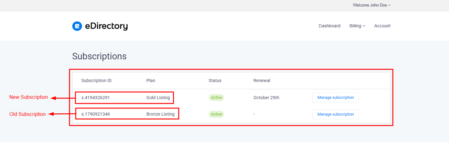 - After completing the subscription to the new plan, the customer can confirm if the upgrade was successful by accessing: Billing > Subscriptions.