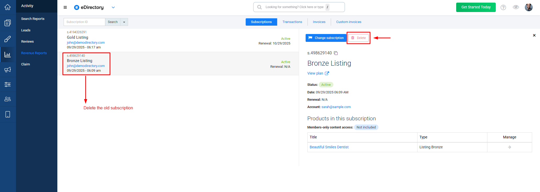 - Delete the old subscription.