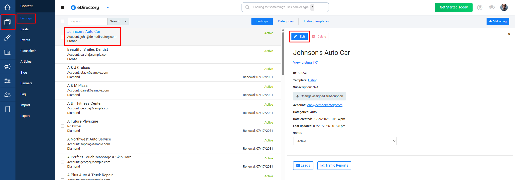- Within the client's account, it is necessary to access each type of content (Listings, Classifieds, Events, Articles, etc).