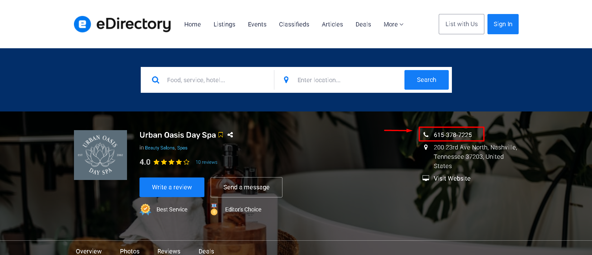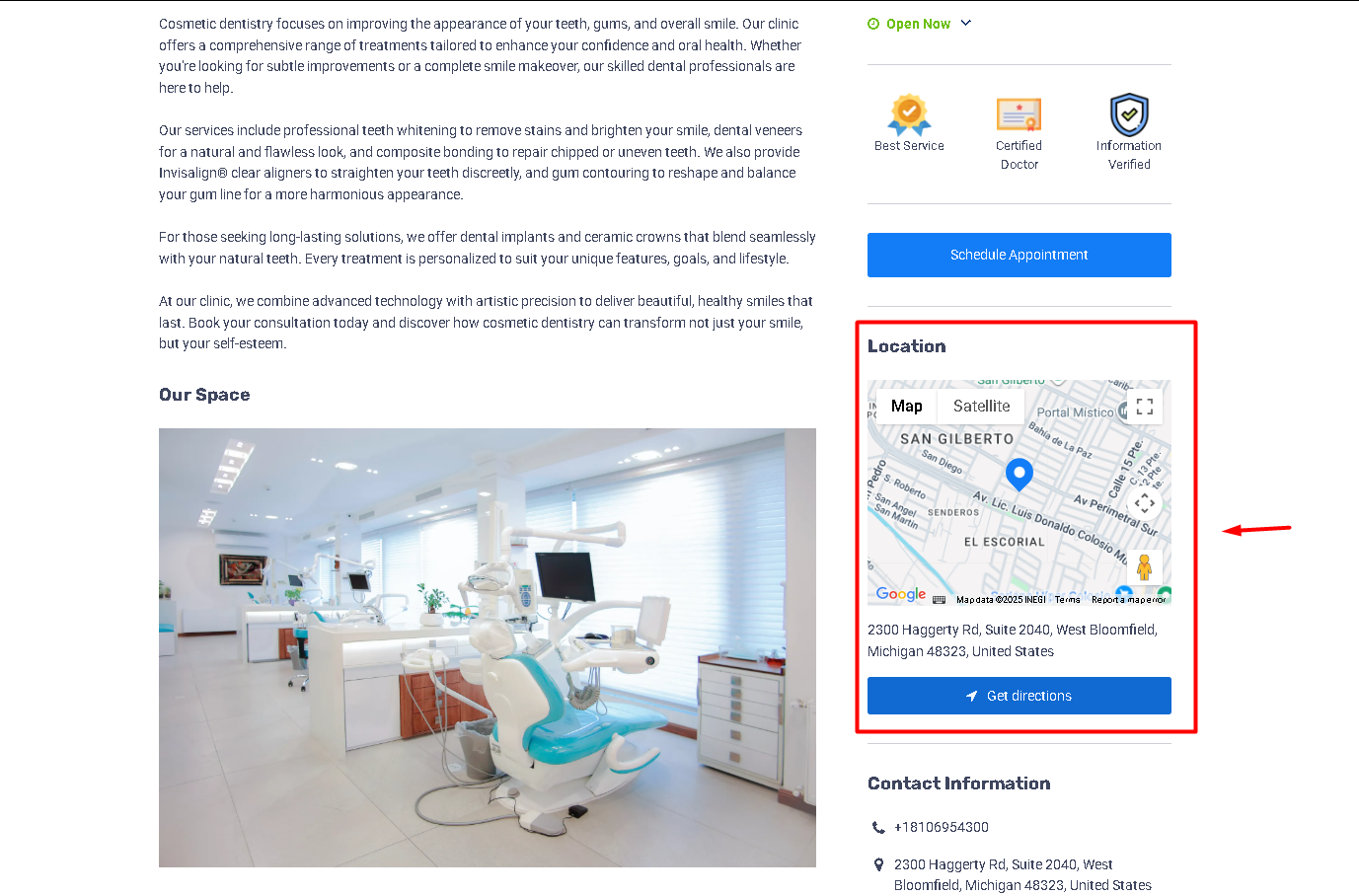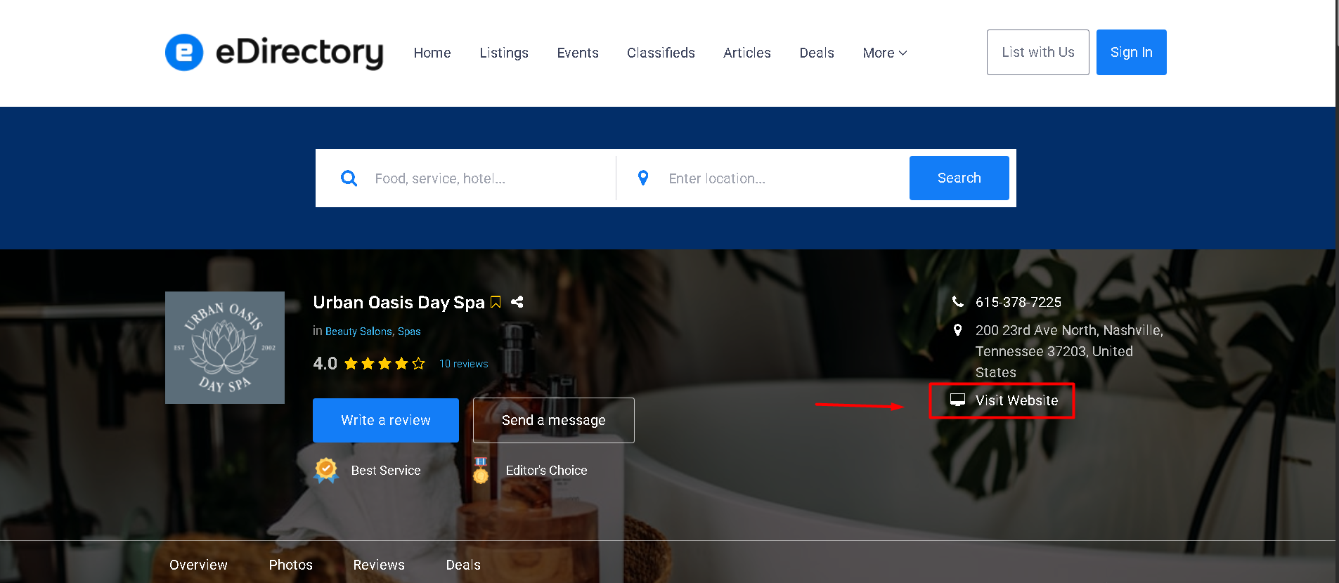 Allows listing owners to add their website link, enabling the option "Visit Website" and driving traffic to their external site.