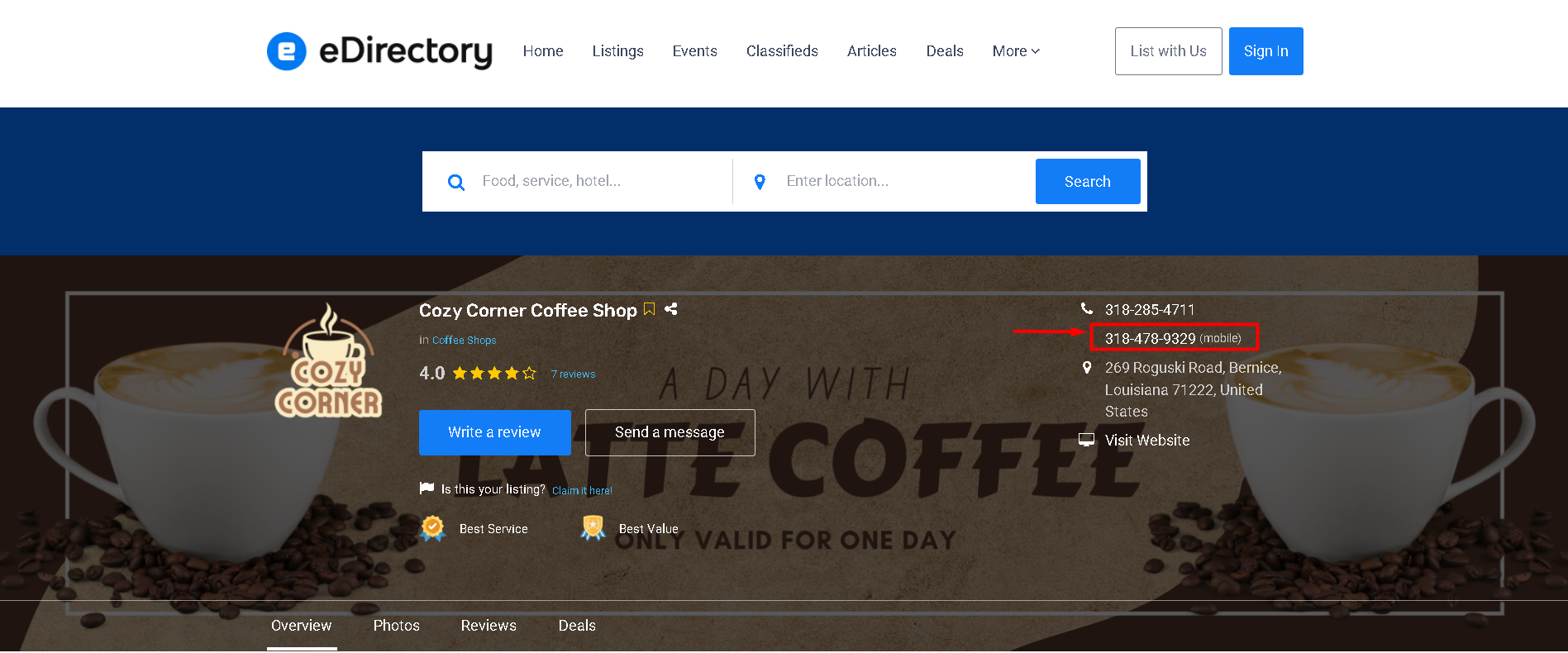 Lets listing owners display a primary phone number.