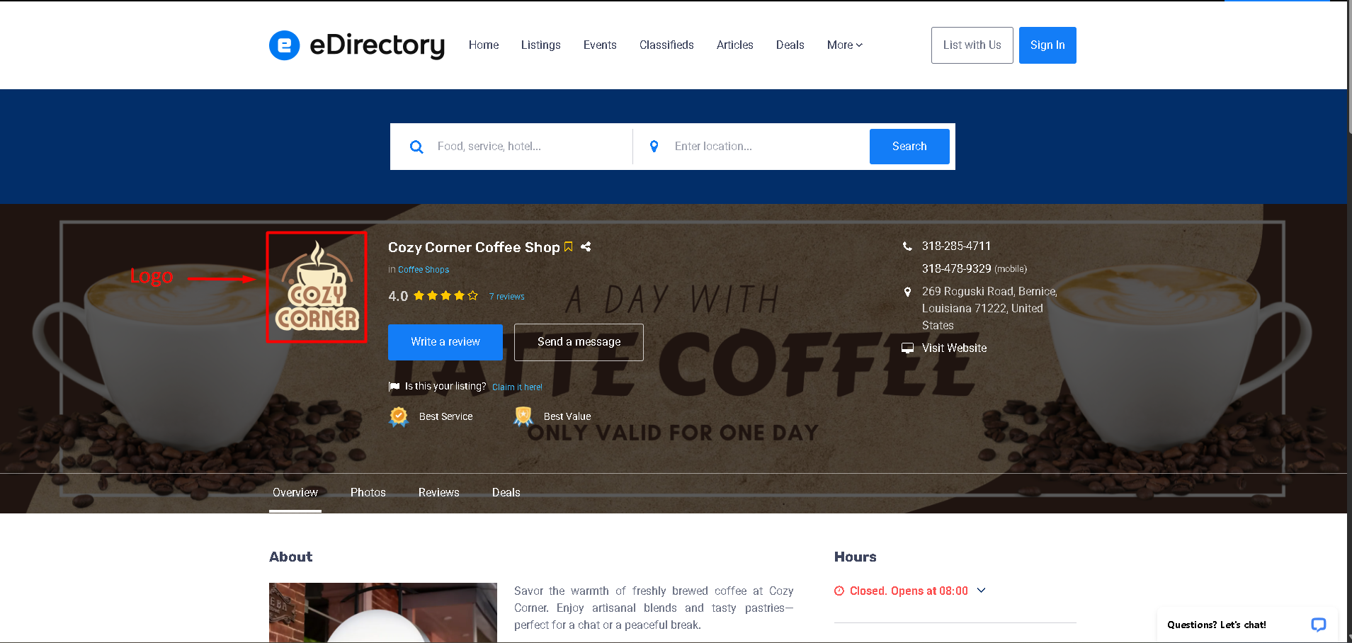 Allows listing owners to upload a business logo.