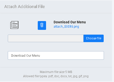 Allows listing owners to upload extra files, such as menus, brochures, price lists, or documents.