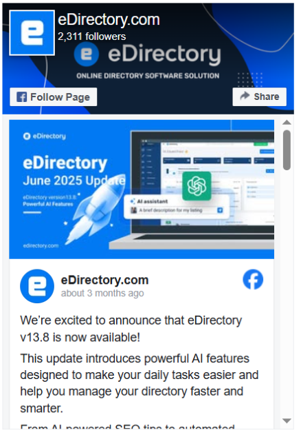 Displays a live embed of the listing owner’s Facebook feed directly on the listing detail page.