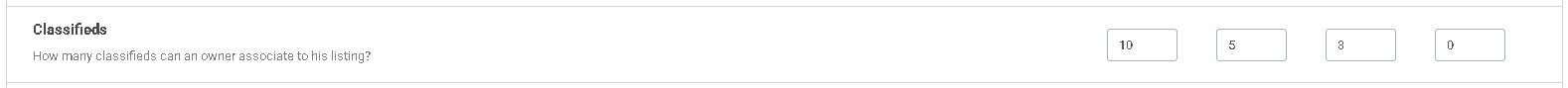 This feature determines how many classified ads can be associated with a single listing, not how many classifieds the user can create on the site overall.