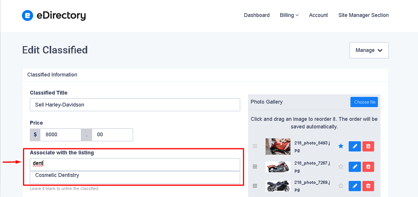 For example, if the Diamond listing level allows up to 10 classifieds, then a user with a Diamond listing can link up to 10 of their existing classifieds to that one listing.