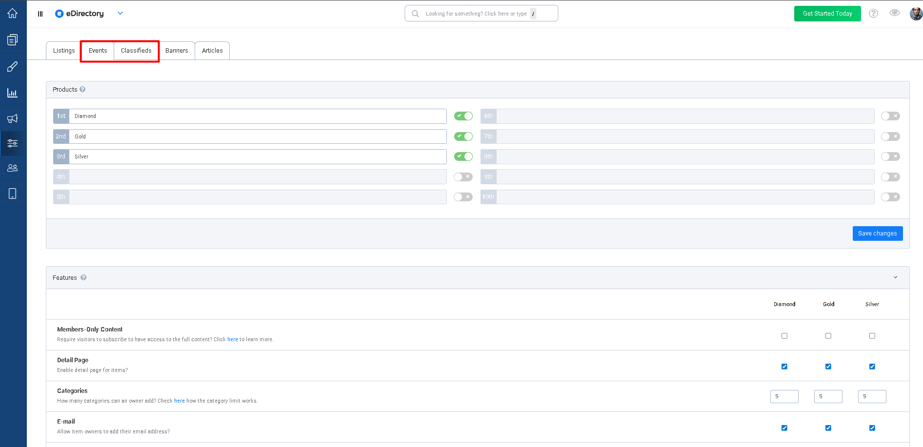 The Events and Classifieds tabs function very similarly to Listings. The features available in these sections follow the same logic and configuration structure as the Listing features explained above.