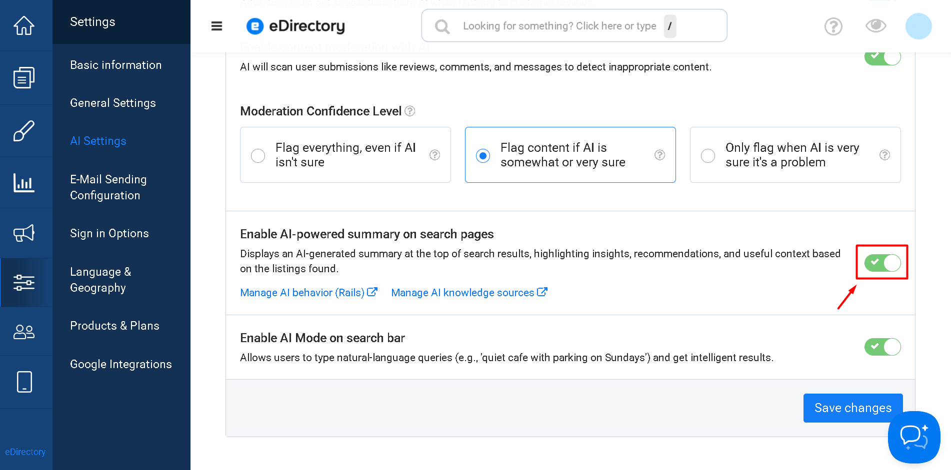 Enable AI-powered summary on search pages