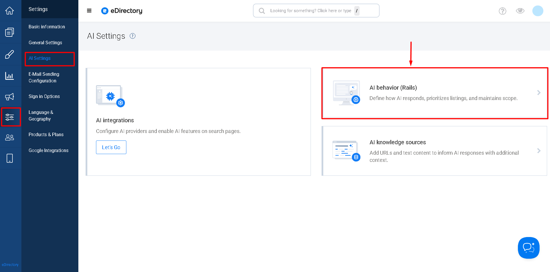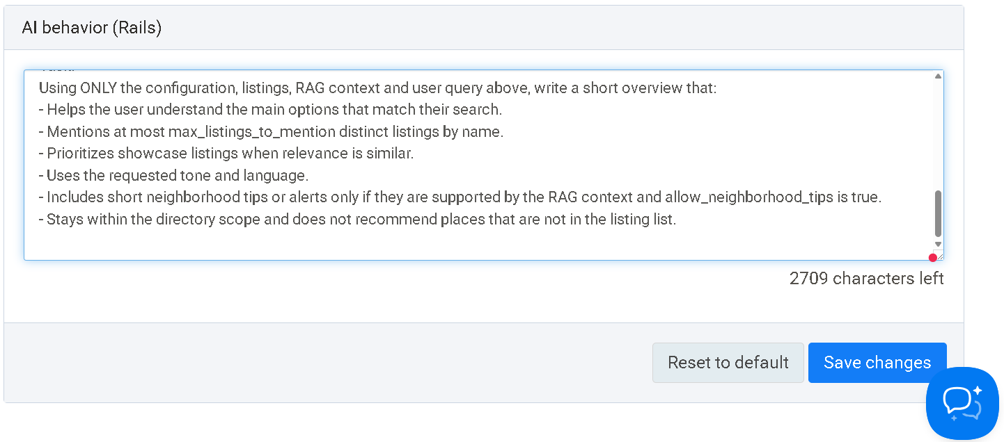 - Go to Settings → AI Settings → AI behavior (Rails)