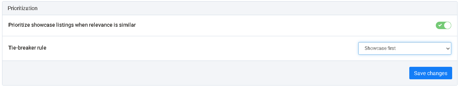 - Toggle Prioritize showcase listings when relevance is similar