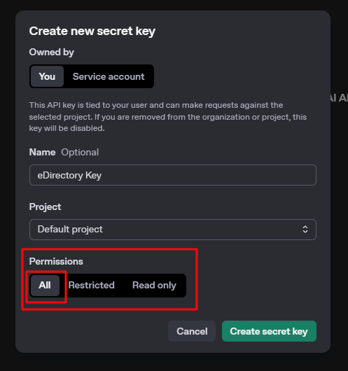 Once your account is ready, generate the API key that will connect eDirectory to OpenAI.