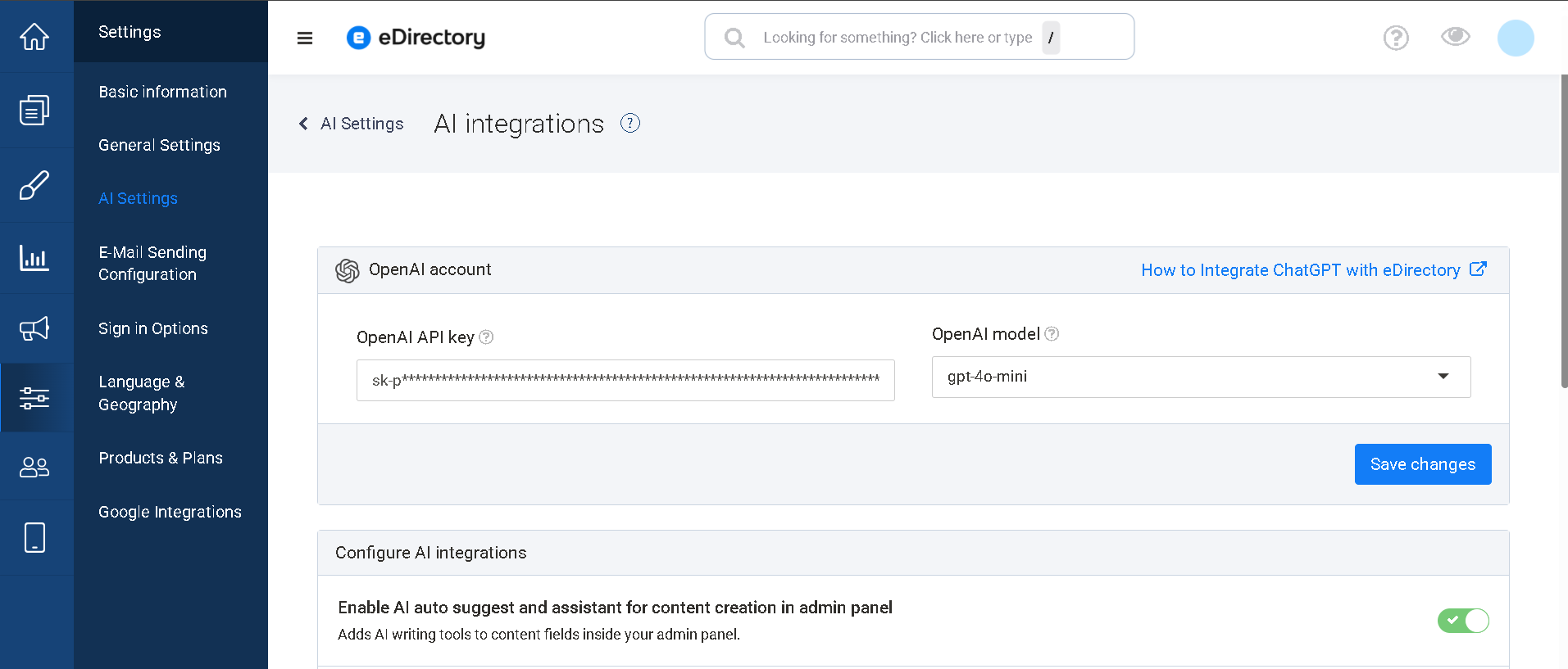 With your OpenAI API key generated and usage limits set, the final step is to integrate it into your eDirectory platform.