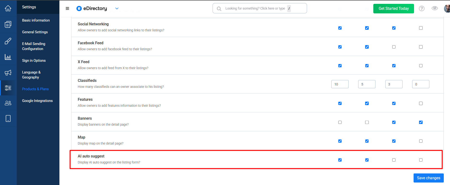 - Go to Settings → Products & Plans → Manage Products → AI Auto Suggest